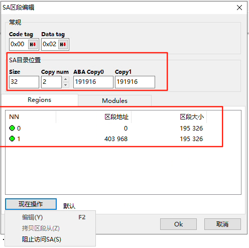 图片中SA区段编辑 (ROM) (20B)界面是关键: